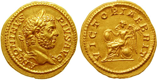 the Victory in Britannia, aureus to the left, denarius reverse to the