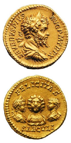 AD), in the Aureus with his wife Julia Domna, and his two sons