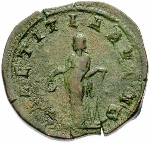 Antoninianus above, Sestertius below